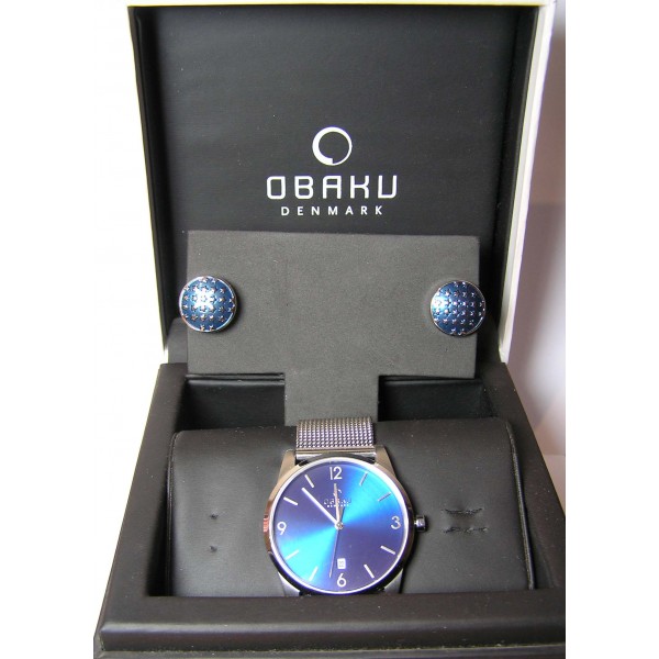 Męski stalowy analogowy tarcza granatowa bransoleta stalowa siateczka szkło tytanowe datownik spinki do koszuli kwarc 3 ATM