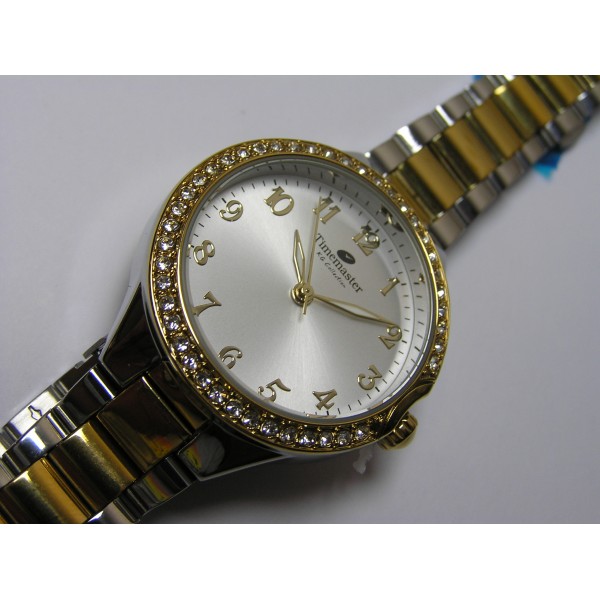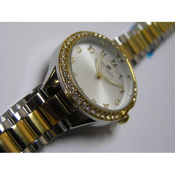 Damski kolor srebrnozłoty bicolor analogowy tarcza jasnosrebrna cyrkonie bransoleta kwarc 3 ATM