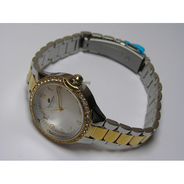Dodaj do koszykaDamski analogowy stalowy z elementami pozłacanymi bransoleta zapięcie-potrójna zakładka...