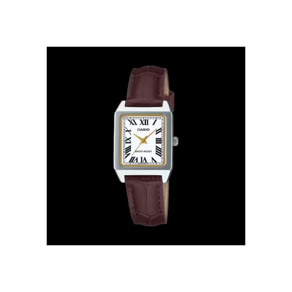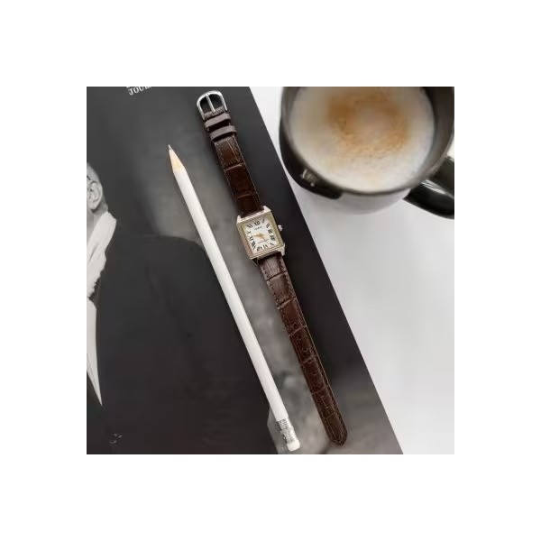 Damski analogowy kwadrat stalowy pasek skórzany brązowy szkło mineralne cyfry rzymskie wskazówki w kolorze złotym 3 ATM
