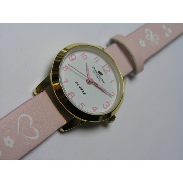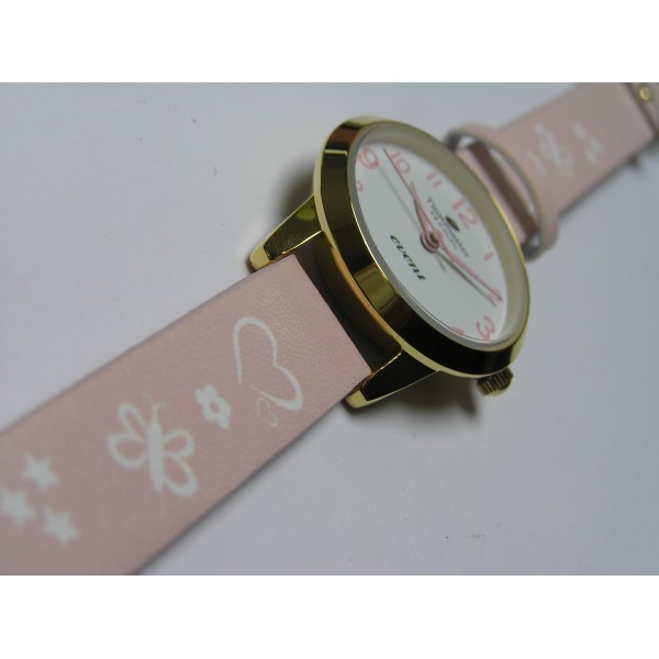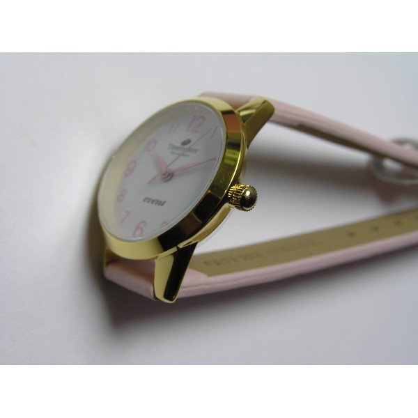 Dodaj do koszykaDziecięcy kolor złoty analogowy okrągły tarcza biała pasek skórzny różowy kwarc 3 ATM...