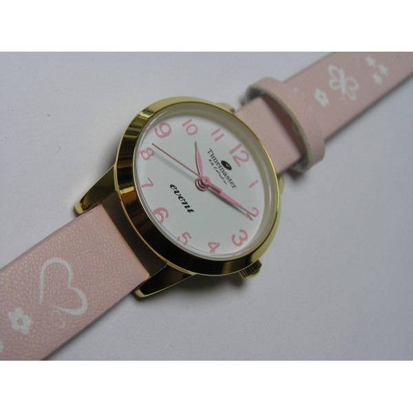 Dziecięcy kolor złoty analogowy okrągły tarcza biała pasek skórzny różowy kwarc 3 ATM