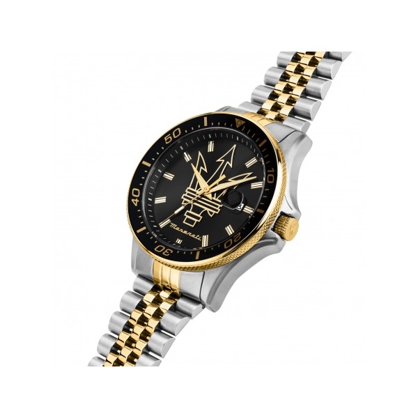 Męski stalowy bicolor okrągły tarcza czarna datownik szkło mineralne bransoleta stalowa bicolor koronka dekiel zakręcany kwarc 10 ATM