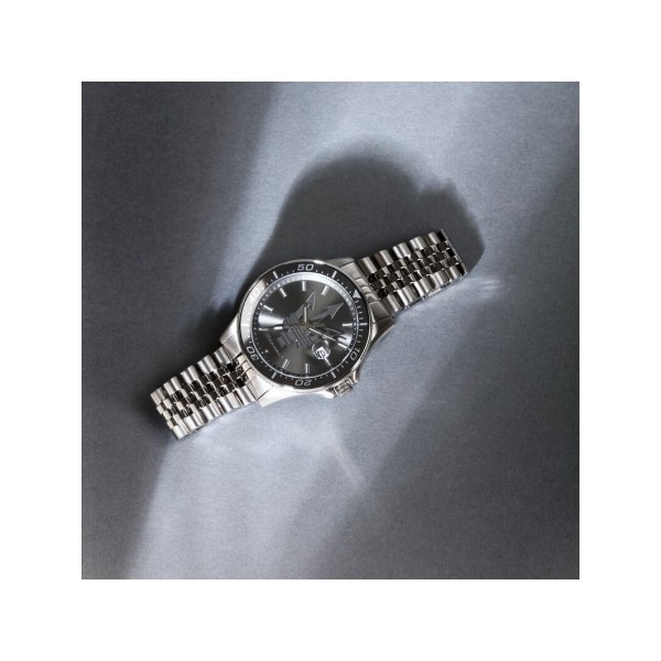Dodaj do koszykaMęski stalowy analogowy okrągły tarcza jasnosrebrna indeksy granatowe bransoleta...