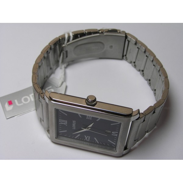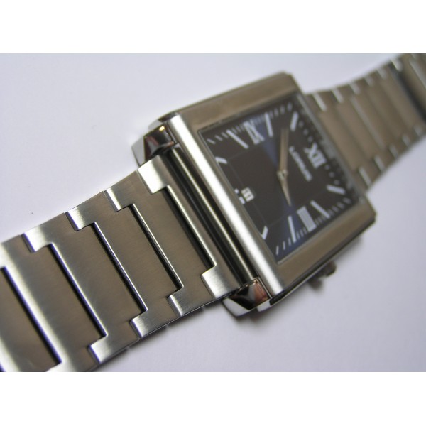 Męski stalowy analogowy prostokąt tarcza granatowa mineralne szkło datownik bransoleta stalowa kwarc 5 ATM