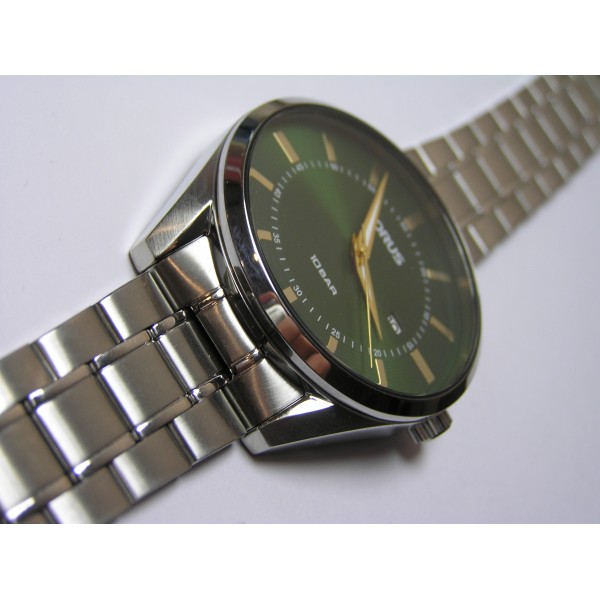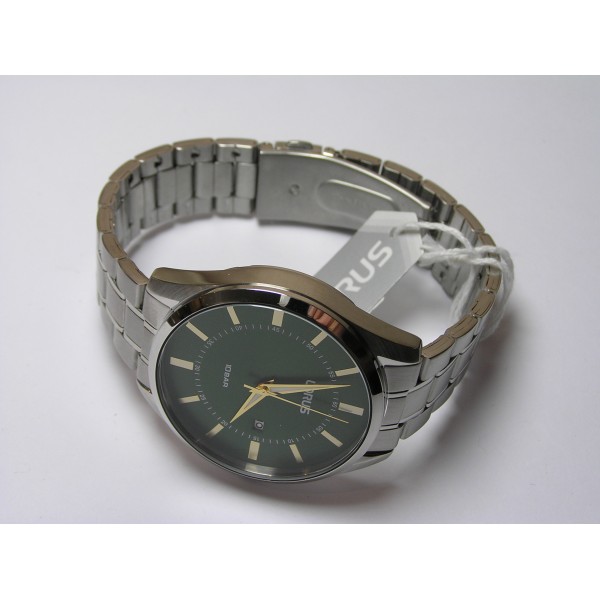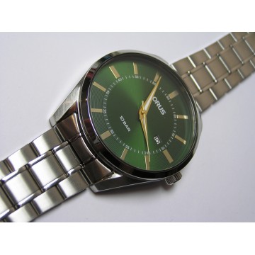 Męski stalowy analogowy okrągły tarcza zielona mineralne szkło bransoleta datownik kwarc 10 ATM