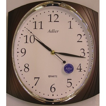 Zegar ścienny analogowy tworzywo sztuczne brązowy prostokątny tarcza biała cyfry arabskie czarne  sekundnik płynący kwarc