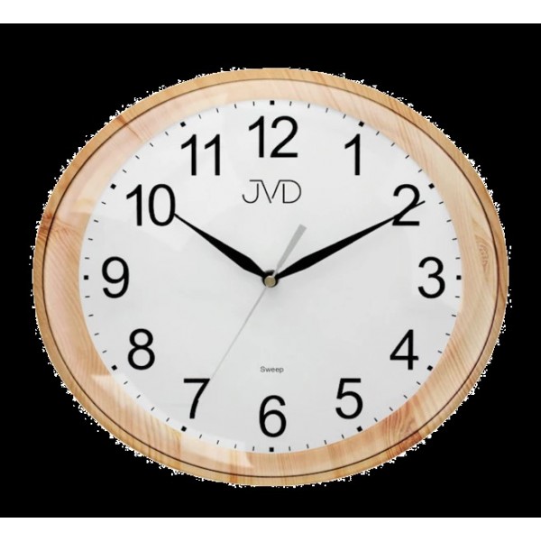 Zegar ścienny owal tworzywo sztuczne imitacja drewna kolor buk tarcza biała płynący sekundnik kwarc